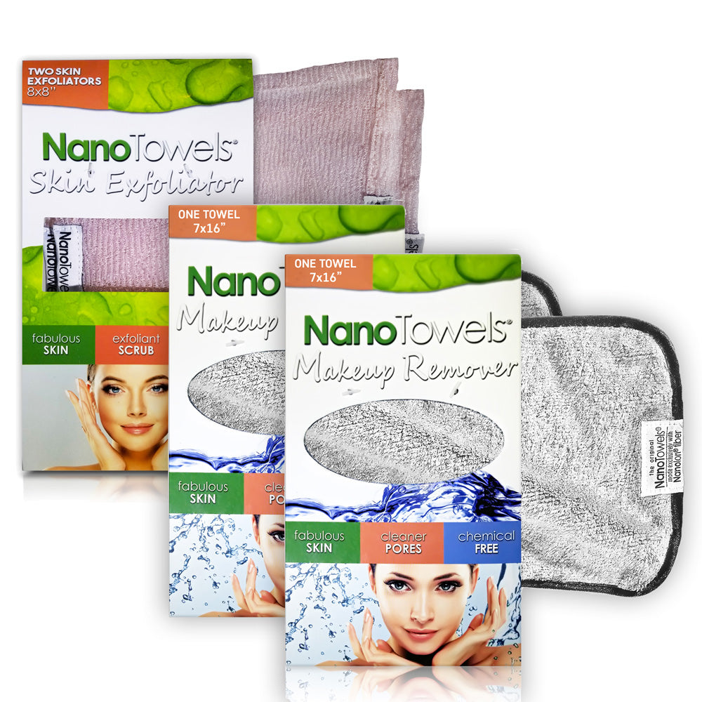 Nano Towels Beauty Pack Bundle - Makeup Remover x2, Skin Exfoliator x1